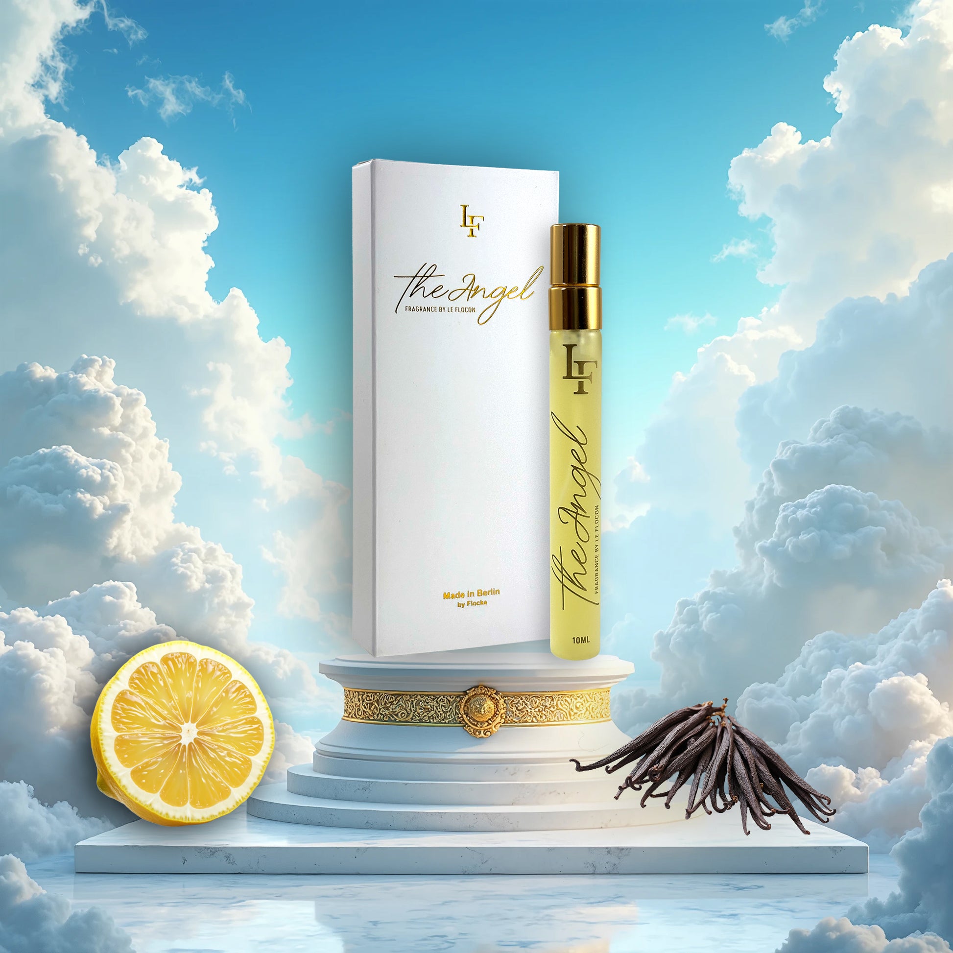 The Angel erstrahlt mit spritziger Zitrone und zarter Bergamotte, getragen von einem Herz aus Jasmin und weißem Moschus.